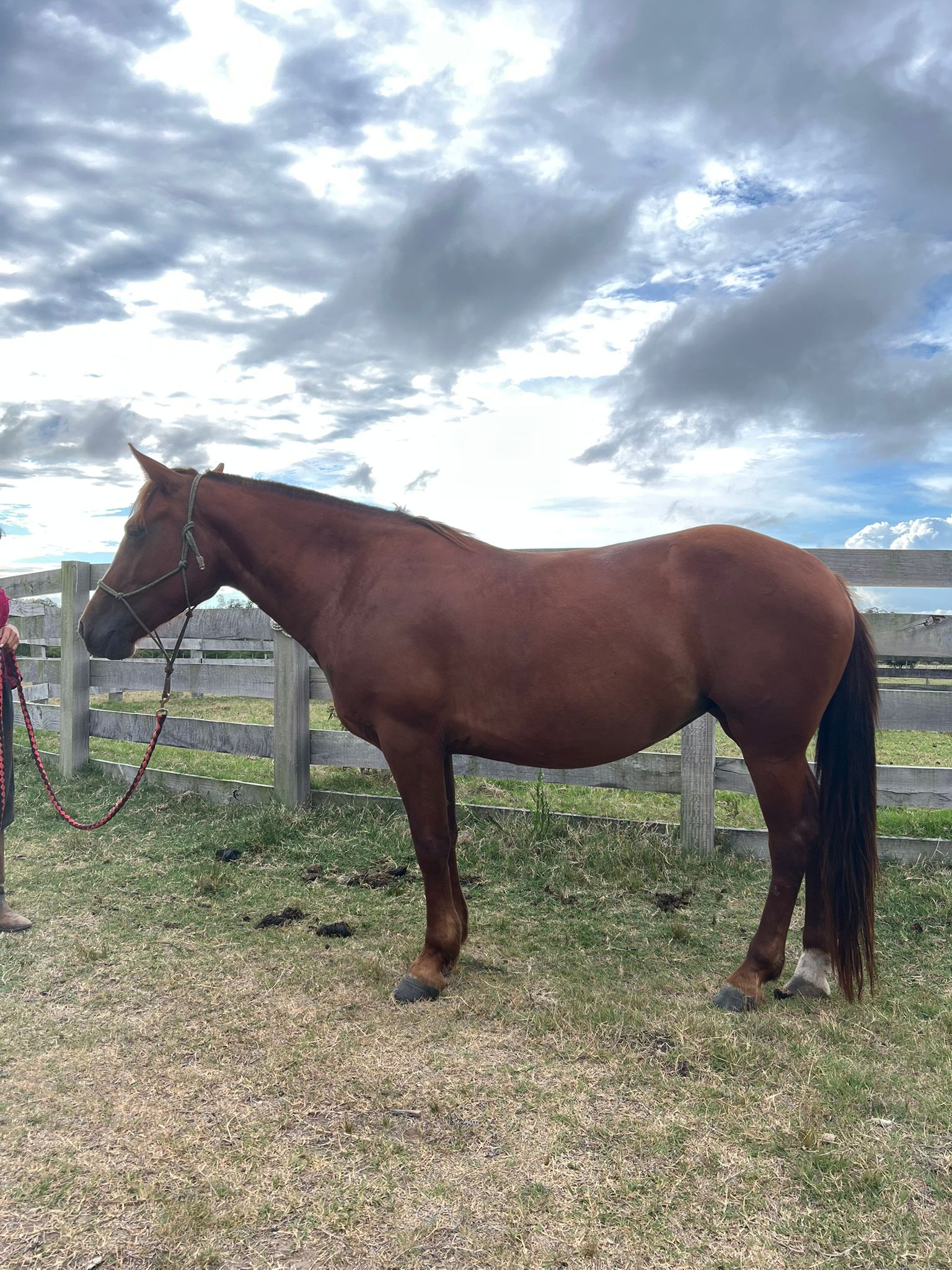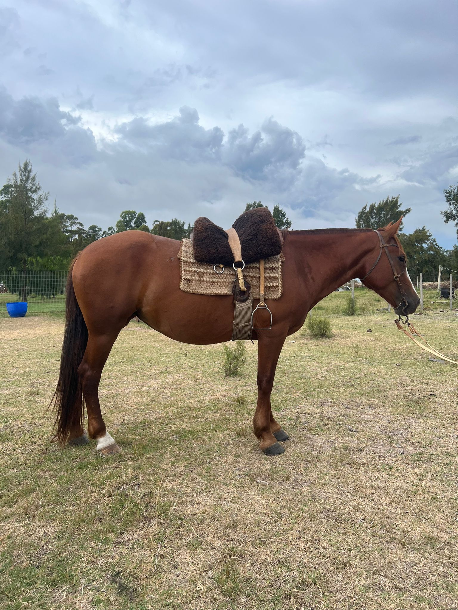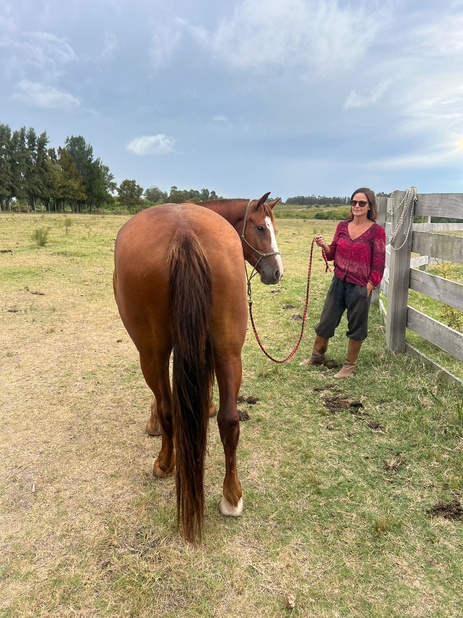 Yegua extremadamente mansa. Con poca voluntad. De los caballos que no tienen nervio por naturaleza. Ideal para paseos. Es territorial para con los otros caballos.