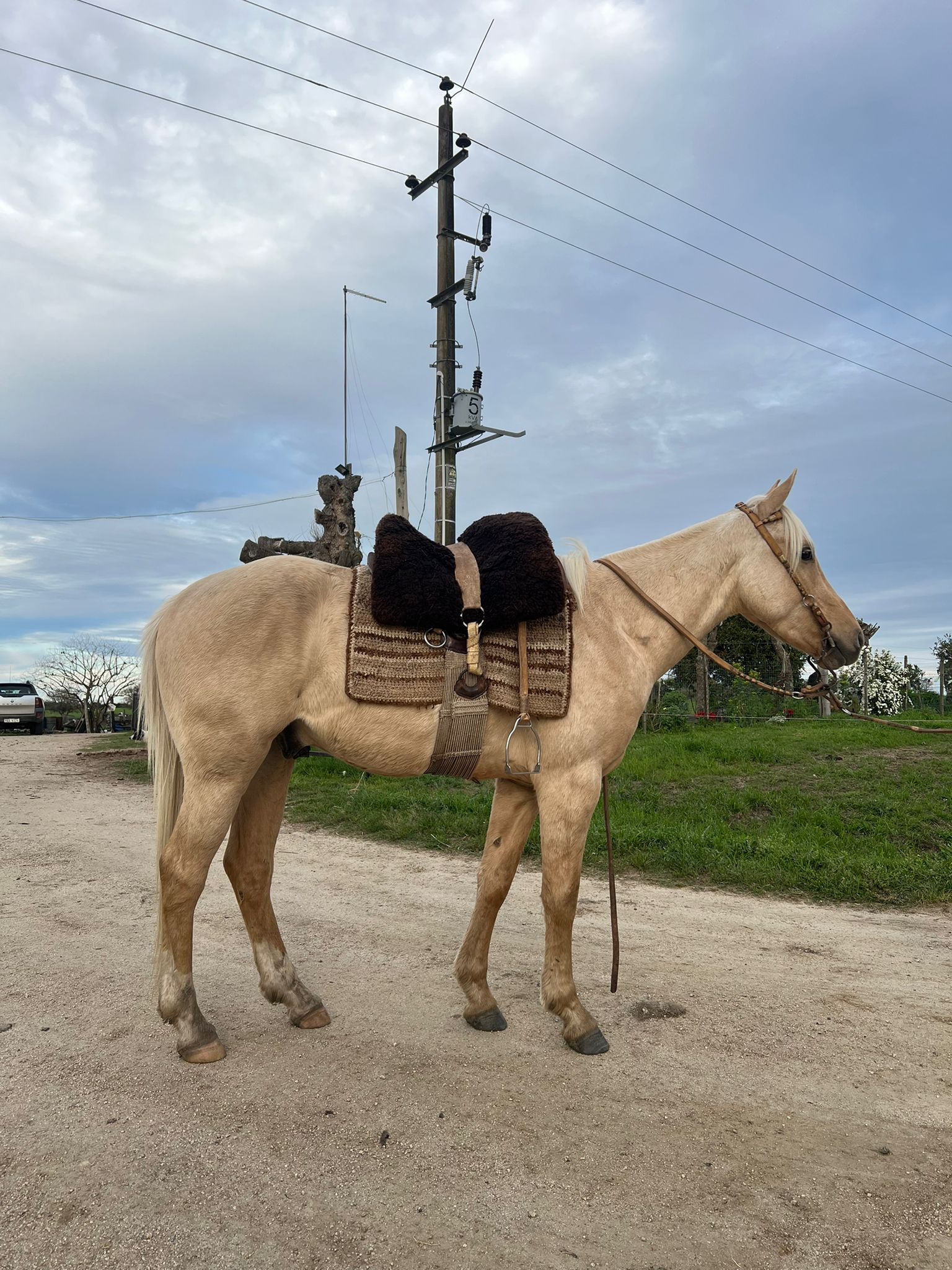 Caballo nuevo. Ya tiene 3 años de doma. Cruza raza Cuarto de milla con criollo. Manso y tranquilo. Ideal para iniciarlo en cualquier nueva actividad.